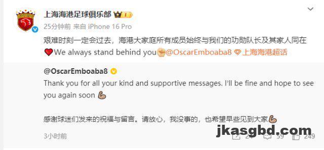 北京时间11月13日,据ESPN报道,上海海港已经向奥斯卡及其经纪人明确表示,愿意提供必要的医疗帮助。