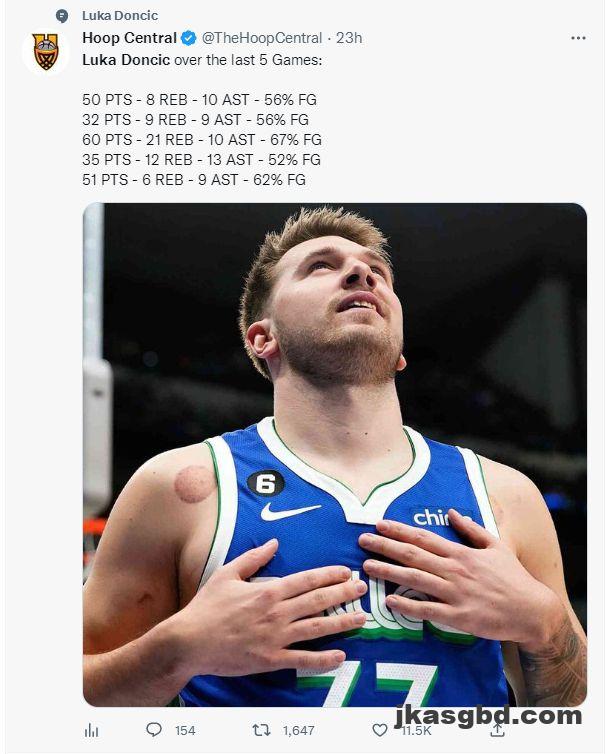 卢卡-东契奇在对阵马刺一战中又拿下了50+的数据,全场比赛以62%的命中率轰下51分9助攻6篮板,这是他最近五 […]