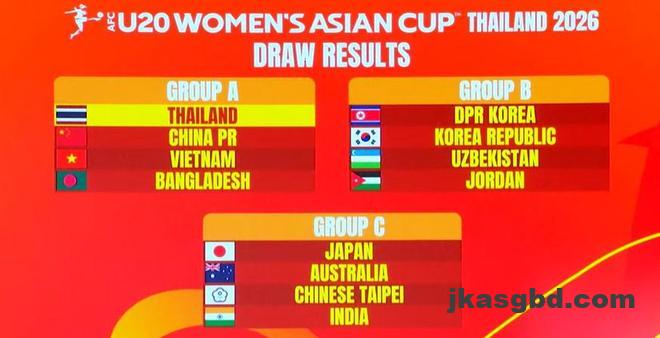 中国女足官方消息,北京时间11月10日,2026年U20女足亚洲杯分组抽签结果出炉:中国U20女足被分至A组,同组将与泰国U20女足、越南U20女足、孟加拉国U20女足迎来交手。