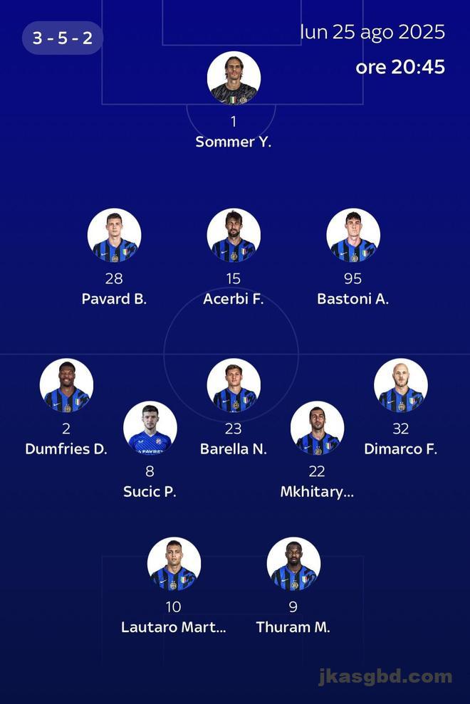 北京时间8月24日,意大利天空体育预测了新赛季意甲首轮国际米兰主场迎战都灵的首发名单,此战也将是齐沃执教蓝黑军团的意甲首秀。