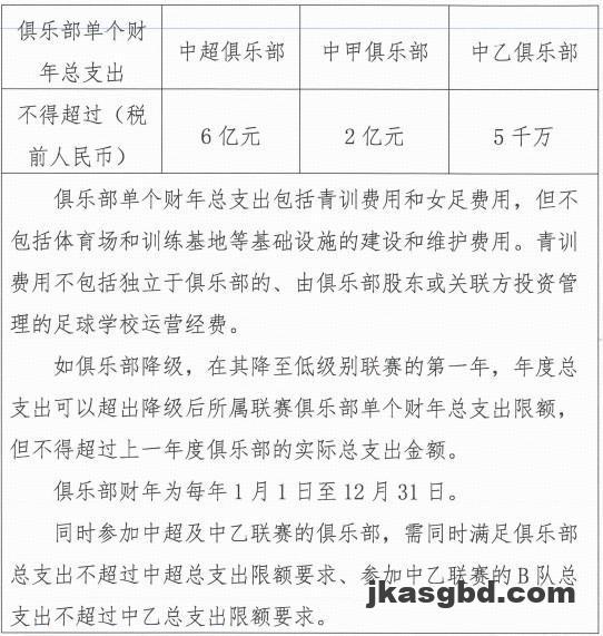 北京时间12月3日,中足联公布了中国足球职业联赛俱乐部财务约定指标的通知,通知中规定了各级职业联赛的单个财年支出限额。