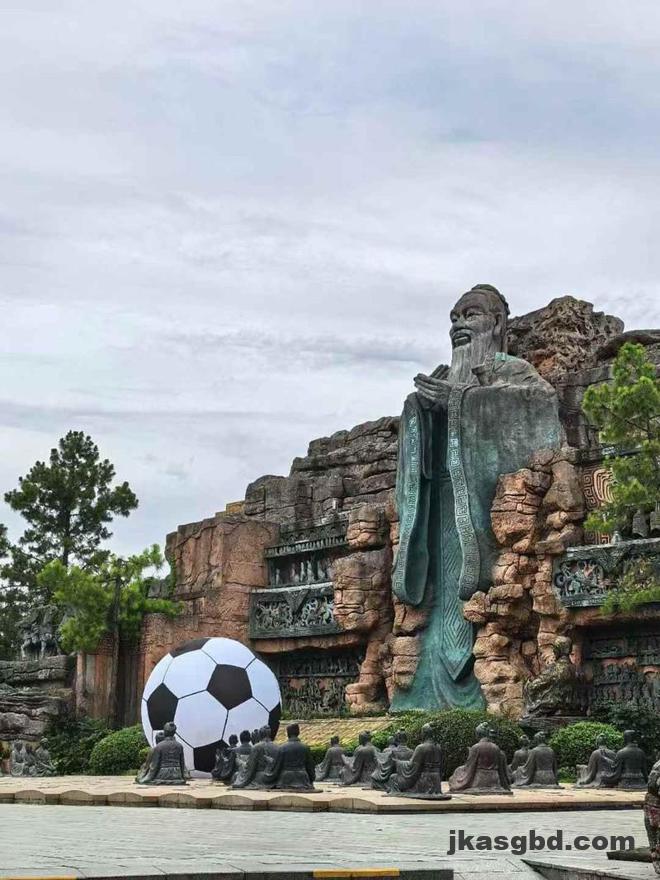 北京时间6月21日,“苏超”联赛第五轮,常州队主场迎战南京队的比赛吸引了众多球迷们的目光。不光是主场请来的二十余只“恐龙大军”。场外,当地球迷更是在孔子雕像前摆放了一个足球,望主队能获得佳绩。