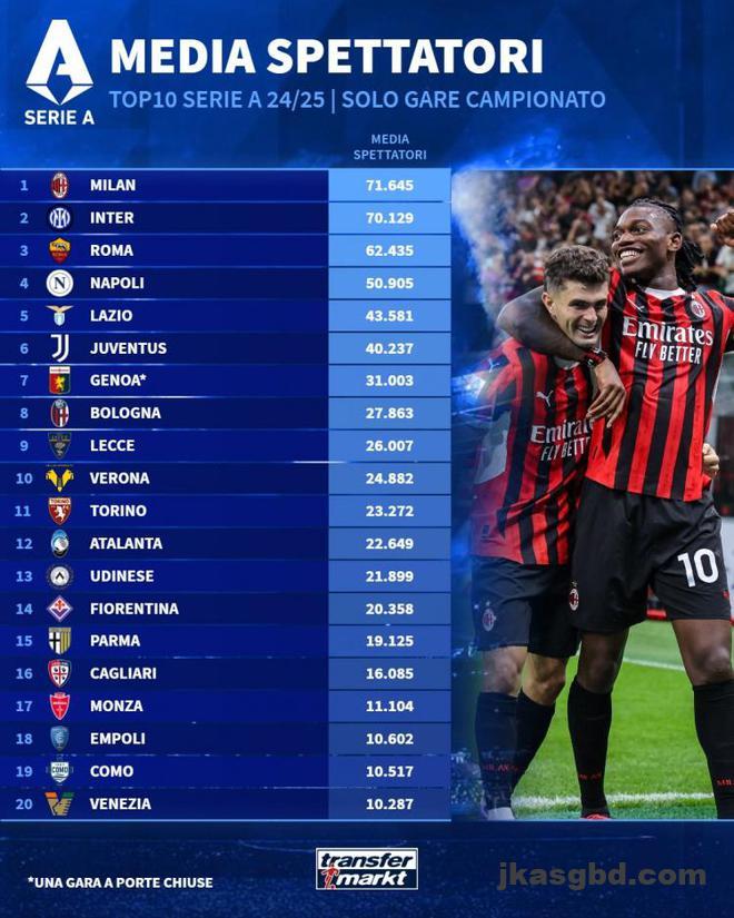 直播吧5月21日讯 德国转会市场统计了意甲球队本赛季前37轮比赛的主场平均上座人数,并列出榜单,米兰双雄排名前 […]