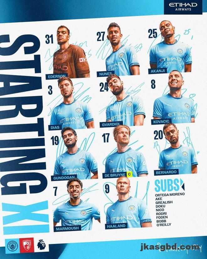 北京时间5月21日凌晨3点,曼城将迎来英超第37轮主场对阵伯恩茅斯的比赛,目前,曼城的首发阵容和替补名单已经公布,其中罗德里回归。