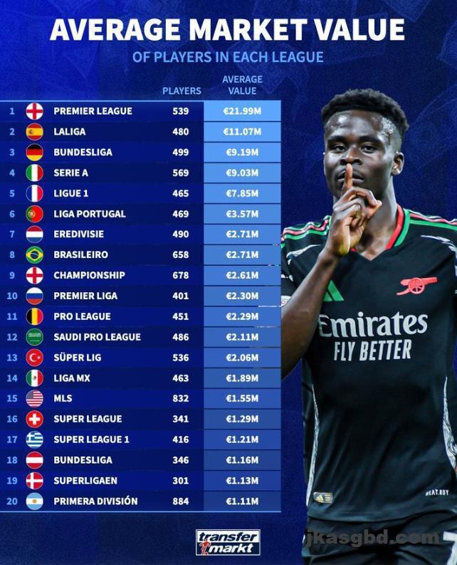直播吧5月20日讯 转会市场网统计了各联赛球员人均市场价值榜前20名,英超联赛遥遥领先。 1.英超:539名球 […]