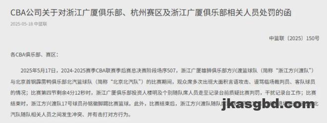 2025年CBA总决赛前五场,广厦总分3-2领先北京。根据媒体人球圈赵探长报道,CBA总决赛G6的裁判阵容出炉,没有中国本土裁判,将是土耳其裁判+印尼裁判+韩国裁判,也将是韩国裁判今年首次吹罚CBA季后赛。