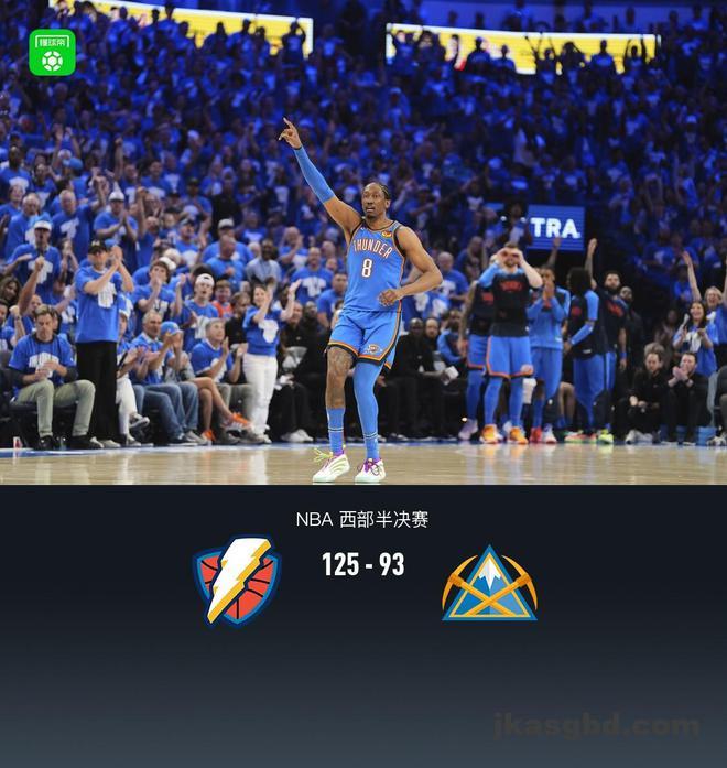 北京时间5月19日NBA西部半决赛,俄克拉荷马雷霆对阵丹佛掘金。半场雷霆60-46掘金,最终雷霆125-93掘金。