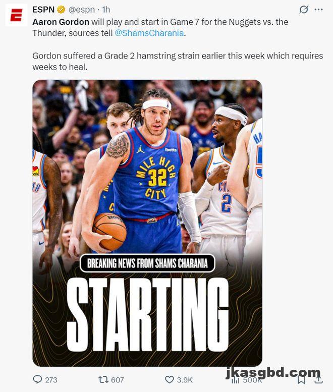 北京时间5月19日,丹佛掘金官方宣布,阿龙-戈登腿筋拉伤但依旧可以出战次轮抢七大战。左腿筋二级拉伤是一项需要数 […]