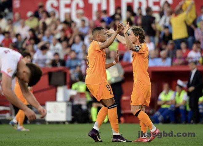 北京时间5月19日,2024-25赛季西甲第37轮,皇马客场2-0击败9人的塞维利亚。姆巴佩制造巴代红牌,罗梅罗被直接红牌罚下,姆巴佩首开纪录,连续5场破门,贝林厄姆锁定胜局。