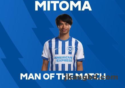 英超第37轮,布莱顿主场3-2逆转击败利物浦,此役替补登场打入一球的布莱顿边锋三笘薰当选英超官方全场最佳球员。