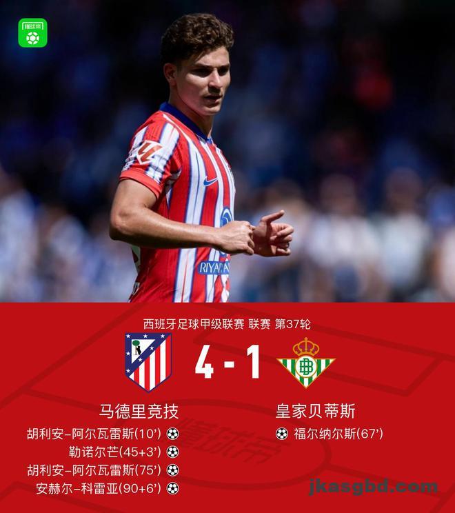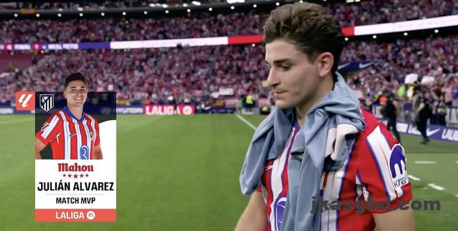 西甲第37轮,马德里竞技主场4-1大胜皇家贝蒂斯,此役贡献两射一传的马竞前锋阿尔瓦雷斯当选西甲官方全场最佳球员。