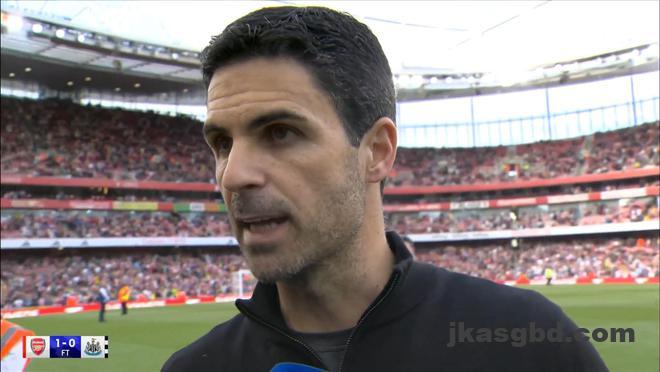 率队在英超第37轮主场1-0击败纽卡斯尔联之后,阿森纳主教练阿尔特塔接受了来自天空体育的采访。