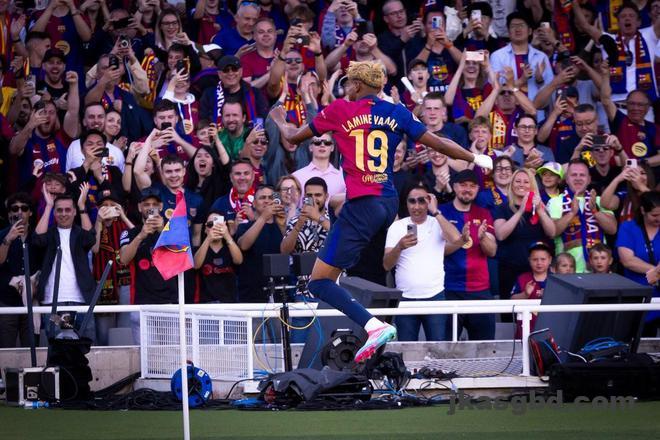 西甲第37轮,巴塞罗那主场对阵比利亚雷亚尔,上半场亚马尔远射破门,据统计,亚马尔是本赛季五大联赛禁区外进球最多的球员。