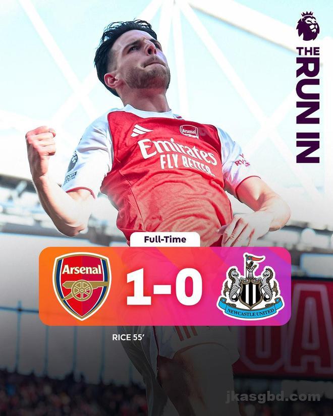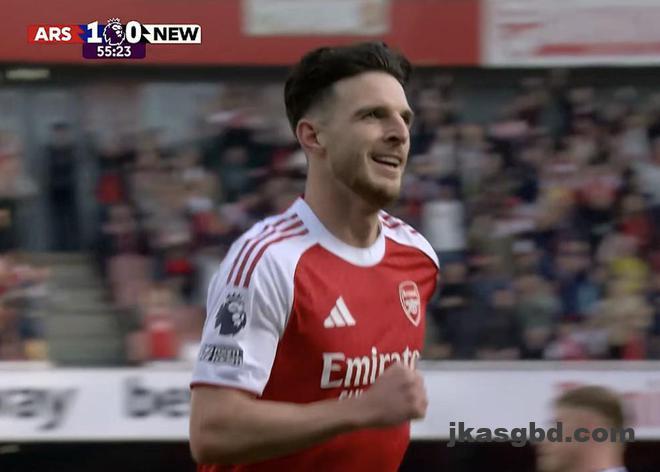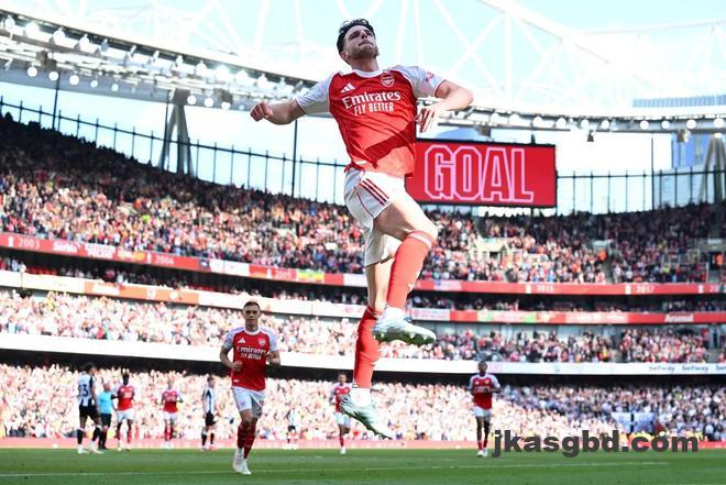 英超第37轮主场迎战纽卡斯尔联的比赛中,赖斯的进球为阿森纳首开记录。