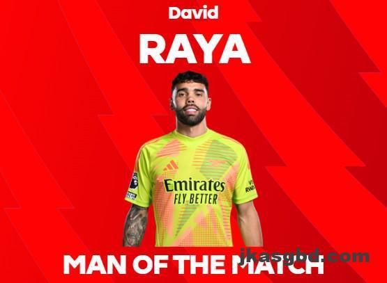 官方消息,戴维-拉亚当选阿森纳对阵纽卡斯尔联一役全场最佳。