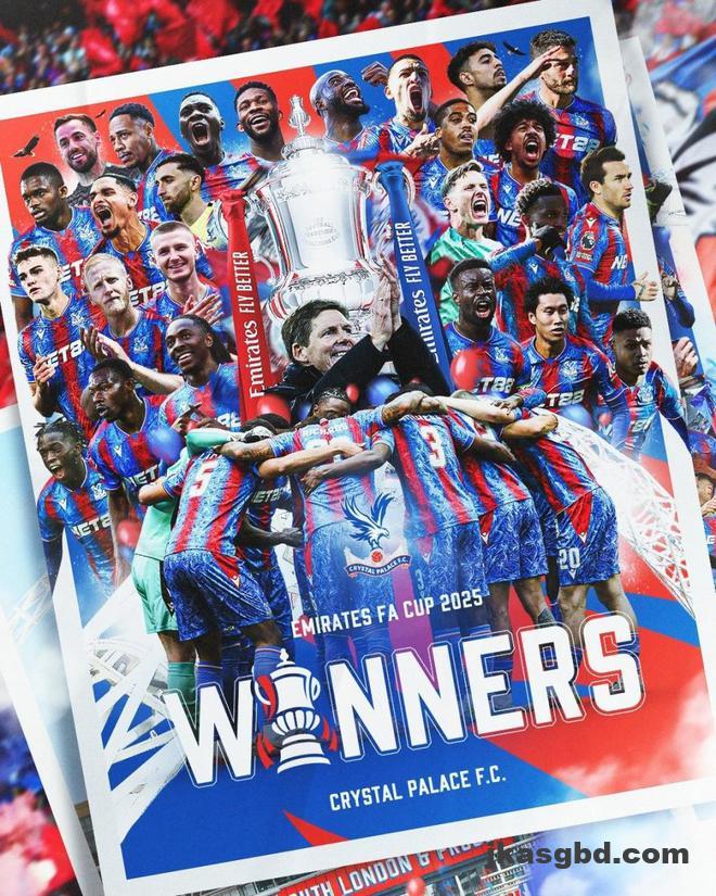 当主裁判阿特维尔吹响终场哨时,温布利球场爆发出震耳欲聋的欢呼声 —— 水晶宫球员们相拥庆祝,这座拥有 120 年历史的俱乐部,终于捧起了队史首座足总杯冠军奖杯。