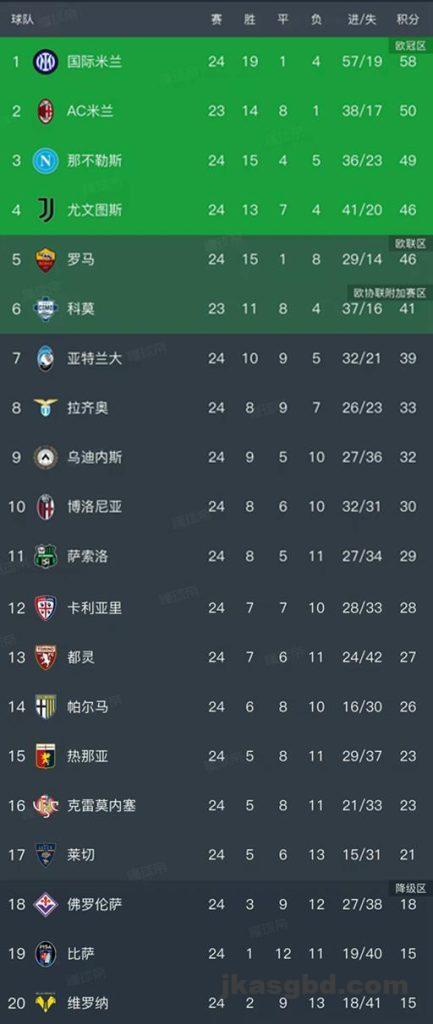 北京时间2月10日,意甲第24轮除了AC米兰和科莫的比赛还没有进行,已经结束了9场争夺,我们看看最新积分榜变动!