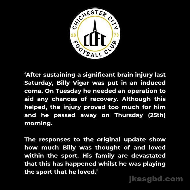 直播吧09月26日讯 英格兰半职业联赛奇切斯特城俱乐部发布讣告,宣布球员比利·维加因为头部遭遇重伤,救治无效死 […]