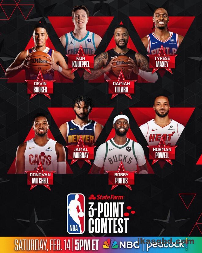 北京时间2月9日,NBA今日公布了2026年全明星三分球大赛的参赛名单,该项赛事将于2月15日快船主场直觉巨蛋球馆举行。三分大赛是当天进行的首个比赛项目。