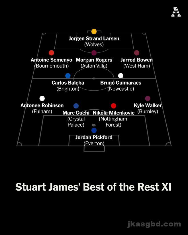 近日,TA从英超BIG6之外挑选出了最强的11人阵容,但有一个限制条件:每家俱乐部只能选择一名球员,罗杰斯、巴莱巴与塞门约等人入选。