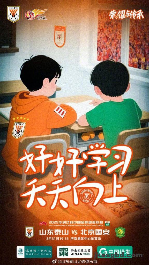 雷速体育8月30日讯 中超联赛第23轮将迎来“京鲁大战”,山东泰山官方发布了战前海报,海报中配文:“好好学习, […]
