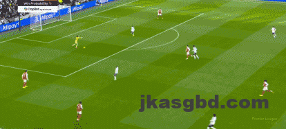 第37分钟,赖斯送出精准长传,萨卡插上单刀低射,维卡里奥出击将球扑出。