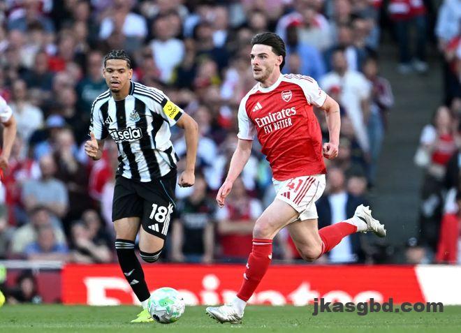 比分落后的纽卡斯尔整体阵型明显前压,第19分钟,威洛克内切远射被拉亚扑出。顶住纽卡斯尔的一波攻势后,阿森纳进攻也有所起色,马杜埃凯在右边路非常活跃,只是传中质量太差,没能将优势转化为进球。第29分钟,托纳利超远距离打出“S”形射门,拉亚第一次扑救脱手,好在第二反应极快,最终将球控制。