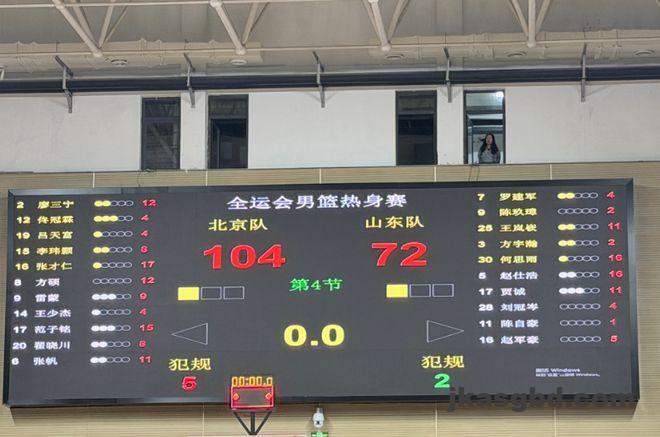 北京男篮仅仅两节比赛就打崩山东男篮,下半场比赛彻底沦为垃圾时间,双方开启练兵模式,北京男篮后两节有所放水,从而下半场48-52被追回4分,最终北京男篮104-72大胜山东男篮。
