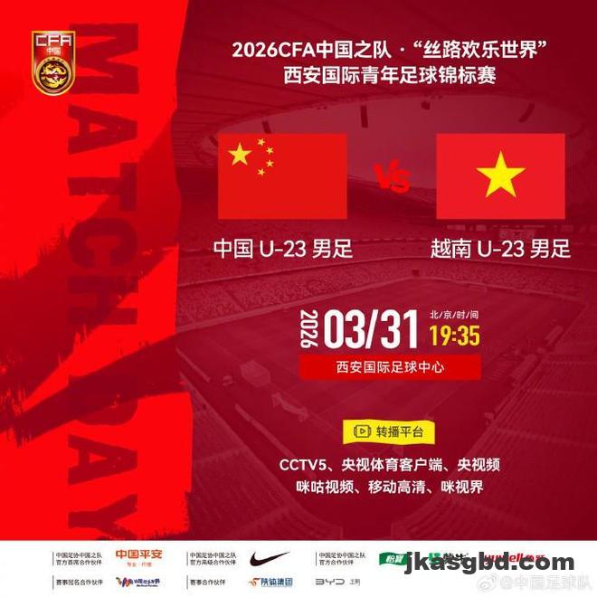 北京时间3月30日,官方消息,CCTV5将转播西安国际青年足球锦标赛第3轮,U23国足vs越南U23的比赛。