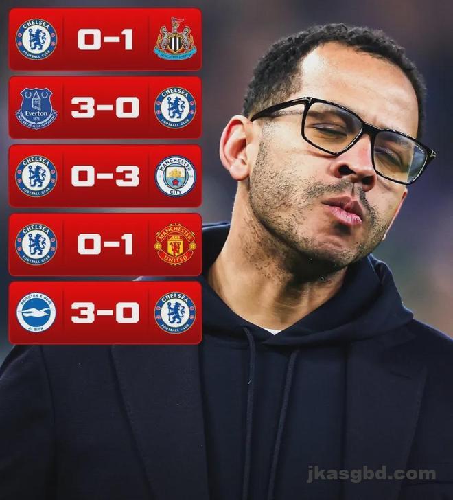 在0-3输给布莱顿之后,切尔西已经在英超5连败且一球未进,这在114年来还是首次。