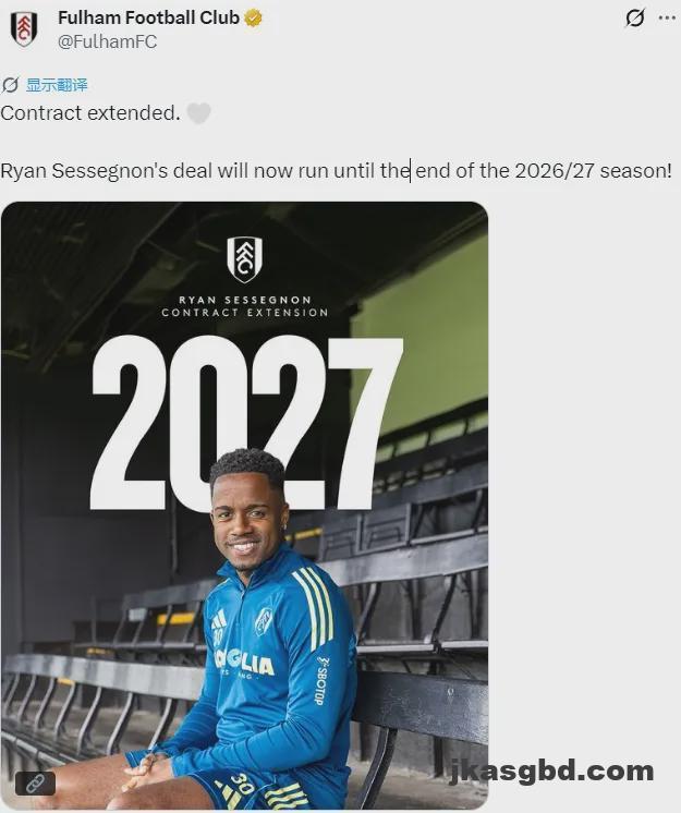 官方:富勒姆宣布和塞塞尼翁续约到了2027年。