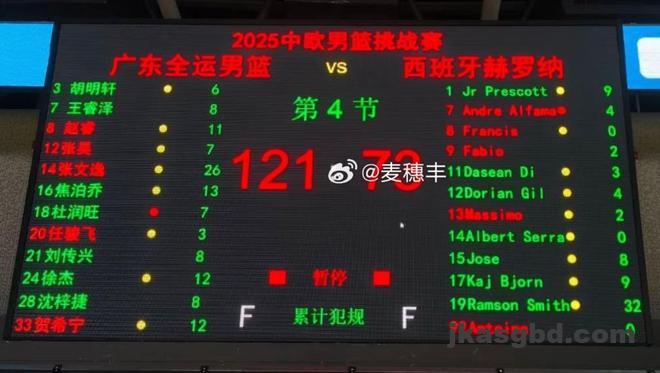 和上一场比赛相比,这场比赛赫罗纳首节比赛的表现还是非常不错的,在进攻端进入状态非常快,虽然在比分上依旧处于落后,不过要比上场比赛的表现好多了。首节比赛结束,广东队以28-20领先。不过进入第二节比赛后,广东队突然提升了防守强度,这让对手几乎没有办法得分,直到张皓嘉被派上场后,他对对方球员犯规,对手才通过罚球打破了得分荒。第二节比赛,赫罗纳全队总共只得到了6分,广东队全面开花打出了35-6的比分,一举将优势扩大到30分以上以63-26领先。下半场比赛就没有好说的了,虽然赫罗纳队找回了一些状态,不过两队的实力差距非常明显,分差反而越拉越大,广东队最终以121-73大胜对手,以一场48分的大胜收官了热身赛。