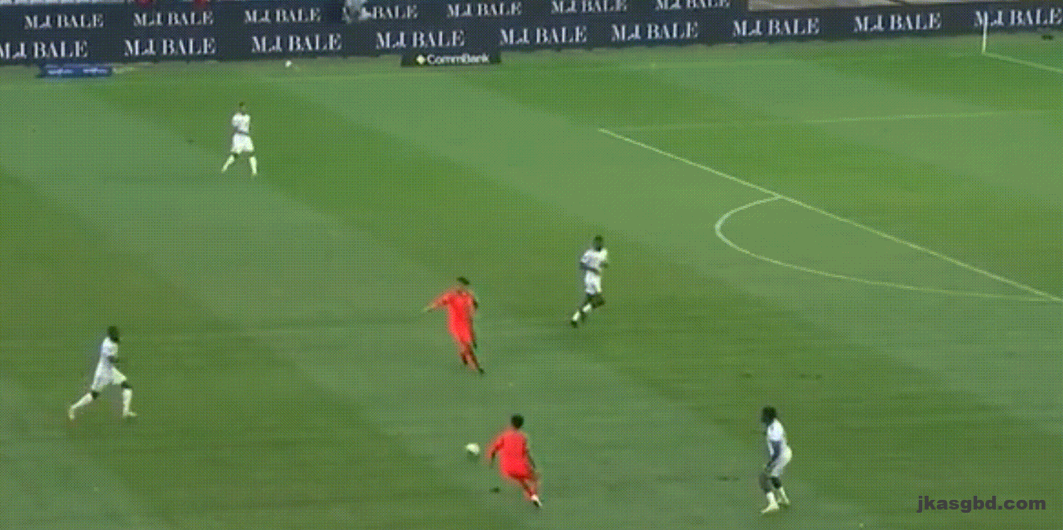 张玉宁本场比赛的状态实在太好,这次回撤之后轻巧地将球卸下,随后转身倚住后卫向前推进,在这个过程中他连续躲开了库拉索两名球员的放铲,只可惜最后向边路的分球出现了失误。