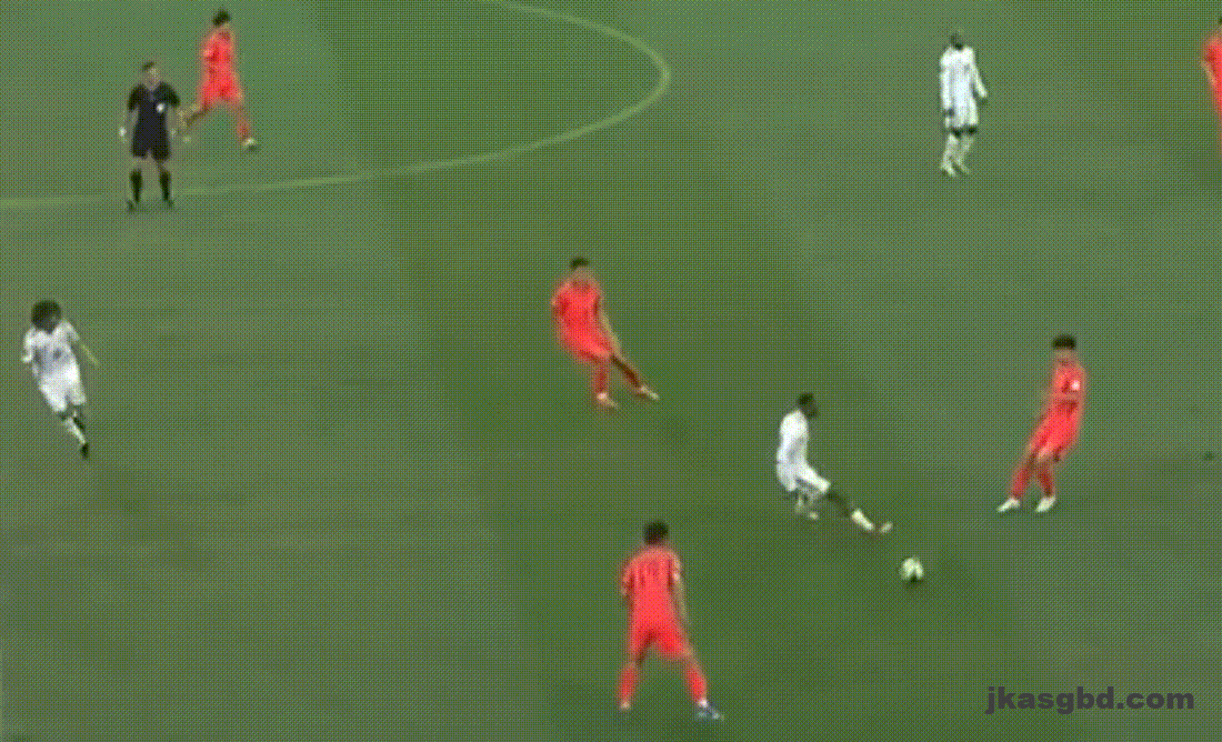 这次王上源在中场的让球向前推进被陈达毅拉倒,国足正是依靠这次被犯规后的定位球进攻,打进了本场比赛的第二个进球。