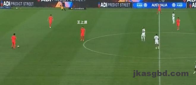在国足控球时,王上源会回撤到两名中卫身前要球。