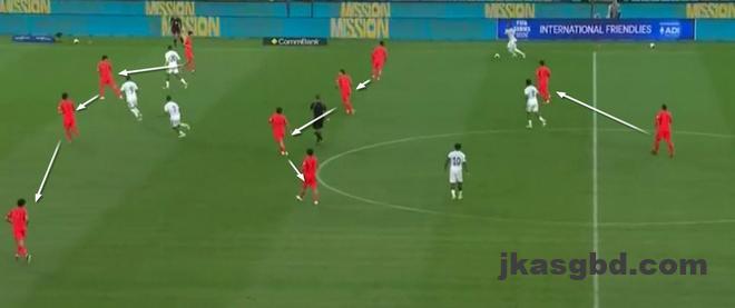 半场两球落后,再加上逐渐适应了和喀麦隆的比赛强度,邵佳一果断在下半场重新踢回了四后卫,防守端回到了熟悉的4-4-2阵型。
