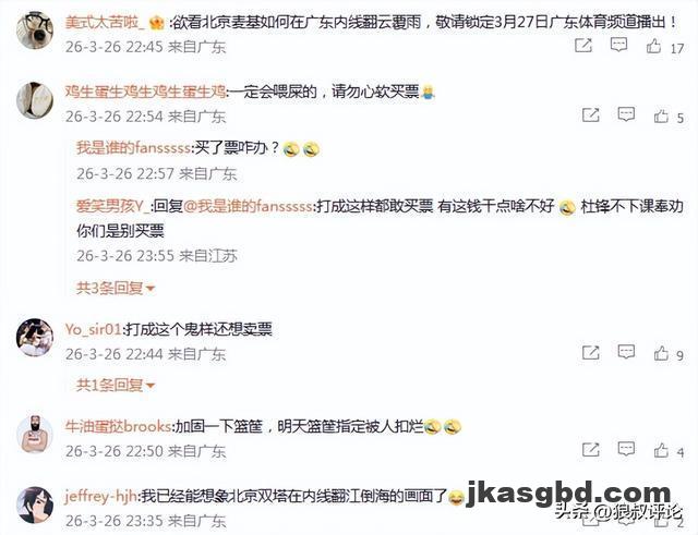 赛前,广东男篮官方社媒更新了一段呼唤更多的球迷现场见证京粤大战的视频,引发外界球迷和媒体的热议。