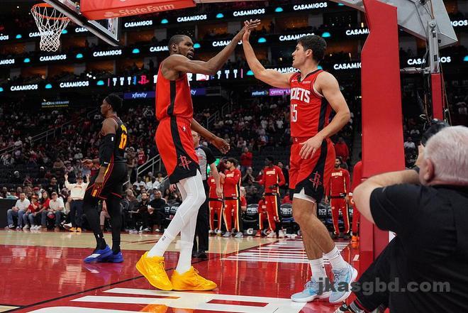 火箭队的杜兰特得到25分和6次助攻,史密斯得到23分和9个篮板,申京得到15分、9个篮板和10次助攻,汤普森得到14分、7个篮板和4次助攻,谢泼德得到14分、4个篮板和4次助攻,伊森得到10分和9个篮板。老鹰队的沃克得到21分、4个篮板和4次助攻,麦科勒姆得到17分,里萨切得到16分和5个篮板,约翰逊得到14分和5个篮板。