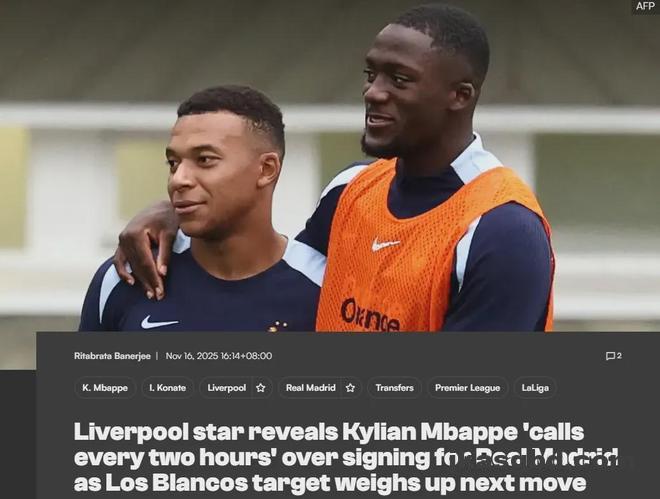 科纳特近日透露,他的同胞姆巴佩“每两个小时”就会给他打电话劝说加盟皇马,而利物浦中卫的合同明年夏天就要到期。