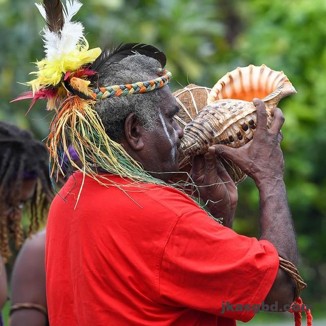 北京时间3月27日,世界杯预选赛洲际附加赛半决赛展开较量,新喀里多尼亚对阵牙买加,最终新喀里多尼亚0-1不敌牙买加遭淘汰。赛前,新喀里多尼亚全队在赛场内拍摄赛前合影时,集体手持海螺等具有传统意义的饰品出镜。