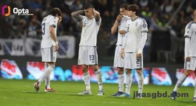 连续三届世界杯附加赛崩盘,连续两次关键战点球大战落败,意大利球员的心理防线,早已在一次次的失利中彻底崩塌。2018年对阵瑞典,球队全场狂攻却毫无办法,最终0∶1落败;2022年对阵北马其顿,球队全场压制,却在补时阶段被对手绝杀;2026年对阵波黑,球队熬到了点球大战,却最终倒在了十二码点前。