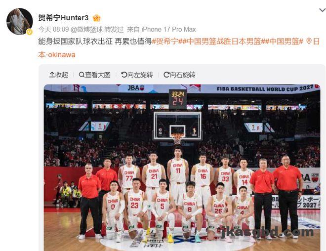 北京时间2月27日晨,中国男篮后卫贺希宁在社媒上发声:能身披国家队球衣出征,再累也值得。(贺希宁这样的言论让无数的中国球迷为之动容)