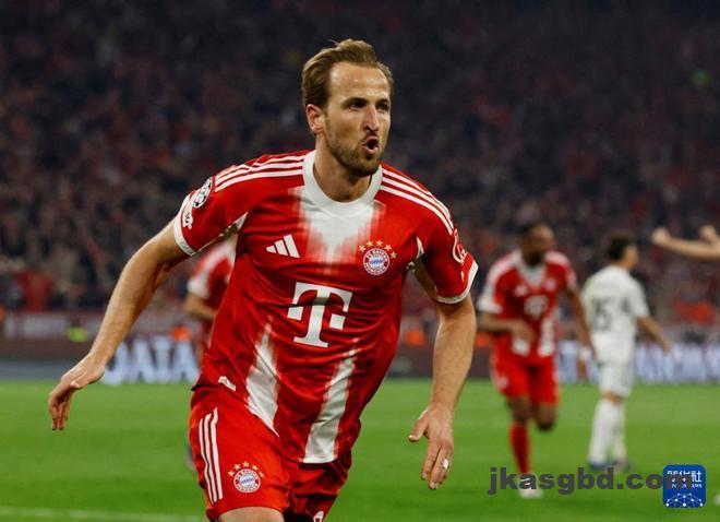 拜仁慕尼黑球员凯恩在比赛中庆祝进球(图据新华社)