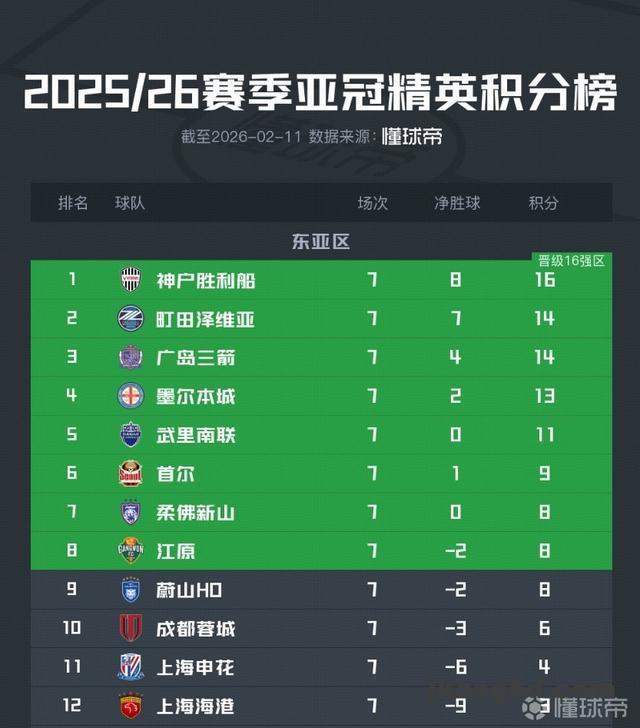 中超三骏在亚冠精英联赛东亚区积分榜垫底。