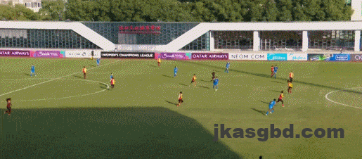 第7分钟,宋菲左路下底横传,王霜门前推射破门,武汉女足1-0领先东孟加拉女足。