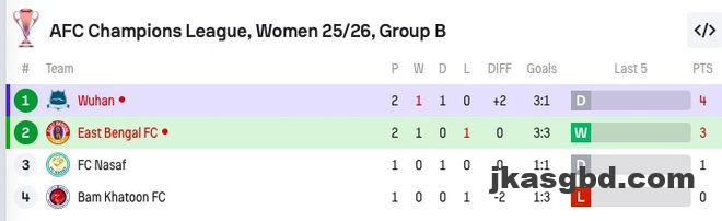 在北京时间11月20日结束的女足亚冠B组第2轮一场对决中,武汉车谷江大女足2-0完胜印度的东孟加拉队,小组前2轮1胜1平保持不败。上半场,王霜双响+造点,宋菲献助攻,邓梦晔、奥乌苏失单刀。下半场,奥乌苏中柱并且再次2次浪费必进球。最终,武汉女足2球小胜。