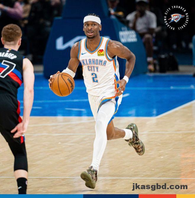 北京时间3月31日,NBA常规赛继续进行,俄克拉荷马城雷霆队(60胜16负)继续连胜。亚历山大得到47分,他在加时赛拿到10分带领球队重新领跑,雷霆队在主场以114-110战胜底特律活塞队(54胜21负)。雷霆队拿到3连胜,活塞队结束2连胜。