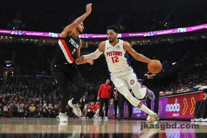 中场休息回来,活塞连续三节得分30+,且限制开拓者连续三节得分不足30分。活塞内外开花压制开拓者,第三节中段开拓者63-84落后21分差距,开拓者随后继续以74-95落后。开拓者连追4分,开拓者单节27-34再输7分,三节结束开拓者78-95落后活塞。前三节比赛,活塞三分23中7,杜伦22分与坎宁安14+6+9,引领活塞5人得分上双;开拓者三分27中4,夏普20分引领开拓者4人得分上双。