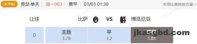 竞足 周一003 意甲 比萨VS博洛尼亚