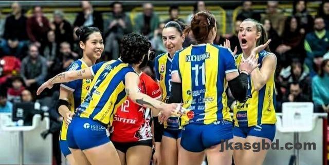 本场比赛,圣乔瓦尼队从客场作战伊始便展现了极强的求胜欲。首局比赛,球队迅速进入状态,进攻端多点开花,以25比17先拔头筹,为整场比赛奠定了良好的基调。第二局成为了全场的转折点与高潮,双方展开了激烈的拉锯战,比分交替上升,场面一度十分胶着。在这一关键局中,圣乔瓦尼队展现出了顽强的韧性,最终以32比30惊险拿下,这一局的胜利极大挫伤了对手的士气。手握两局优势的圣乔瓦尼队在第三局彻底释放,攻势如潮,以25比13锁定胜局,最终实现零封对手。